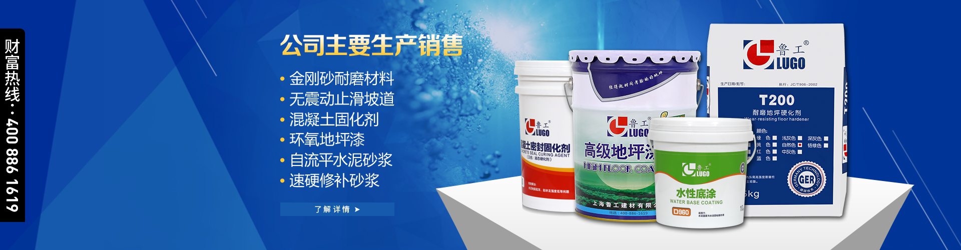 上海魯工建材有限公司——是一家集研發(fā),生產(chǎn),施工于一體的化學(xué)建材專業(yè)公司。產(chǎn)品主要包括環(huán)氧地坪,耐磨硬化地坪,運動場地,建筑干粉,以及建筑防腐,防水材料。 公司依靠科技人才優(yōu)勢,采用進口原料,不斷開發(fā)新產(chǎn)品,并根據(jù)不同的客戶需要,從實際考慮設(shè)計恰當(dāng)?shù)姆桨福玫娇蛻粢恢抡J(rèn)可,享有良好聲譽。 公司按照國家標(biāo)準(zhǔn)和行業(yè)標(biāo)準(zhǔn),制定嚴(yán)格的生產(chǎn)流程和施工工藝,嚴(yán)格按照ISO9001國際質(zhì)量體系生產(chǎn)施工,目前公司已全面實施一套現(xiàn)代化的科學(xué)管理模式,以確保企業(yè)健康,快速發(fā)展。 我們以“質(zhì)量為先,誠信為本,服務(wù)為重”的 經(jīng)營理念,以“精益求精,永無止境”的企業(yè)精神,為您提供優(yōu)質(zhì)產(chǎn)品和滿意服務(wù)。